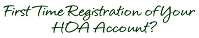Click our step-by-step First-Time Registration Instructions to easily guide you through the steps to register and login for the first-time to view your HOA account. Then, you will have 24x7 access to all of your homeowner assessments, charges and payments.